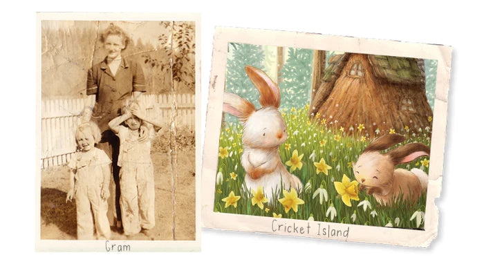 In the months that followed, our Gram, a seamstress, comforted us with stories about bunnies who lived in her garden. Sitting in her sewing circle, these tales helped to mend our broken hearts and soothed us to sleep at night. Soon we started making up our own adventures and sewing cloth characters to make our stories come alive.