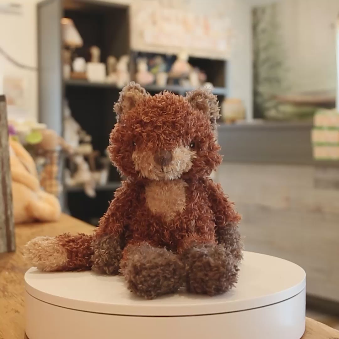 Foxy is handsome indeed, from his furry muzzle to his fluffy tipped tail in rich auburn red, burnt cream, and chocolate brown fur. Embroidered features and velour nose.