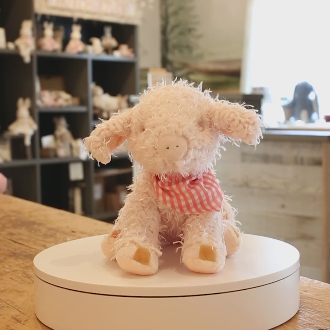 Hammie the Pig is quite possibly the most adorable pig ever to come from the farm. Scraggly fur in a lovely shade of pink with soft striped ears and hoofs. Hand embroidered eyes & kissably cute snout make this the stuffed pig blue ribbon worthy from even the most discerning of judges! Part of the Good Friends Farm collection.