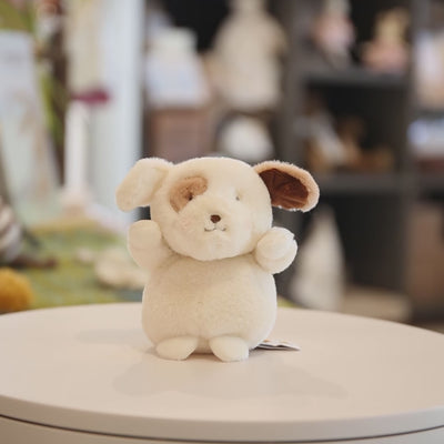 Skipit the Puppy, an adorable plush bag charm! With warm cream and tan fur, Skipit is the perfect pint-sized pup to accompany you on all your adventures. With floppy ears and sweet expression are sure to bring a smile to your face every time. Clip Skipit onto your keys, backpack, or purse, and let this charming little companion add a dash of playful joy to your day.