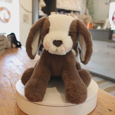 Meet Floppy Mutt, the ultimate snuggle buddy for dog lovers of all ages! This adorable stuffed animal pup features a floppy, huggable body with rich Cocoa brown nibble fur that’s perfect for cozy cuddles. With sweet, droopy ears, a heartwarming embroidered face, and a big, kissable nose, Floppy Mutt is as lovable as they come. Ready to join in on every adventure, nap or playtime, this plush puppy is crafted in our signature softness and charm, making it a wonderful friend for all!