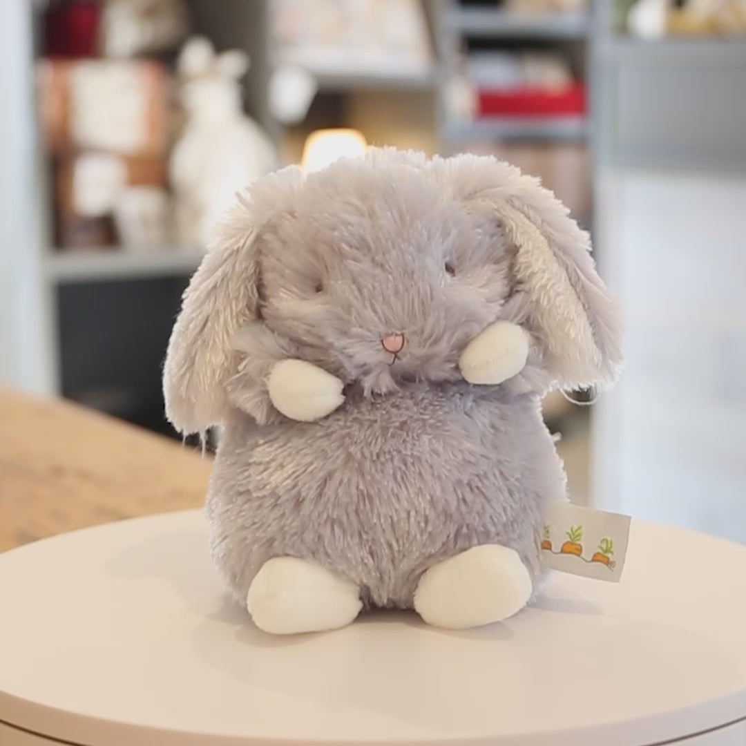 This is one chubby little grey bunny that you are sure to love. Shaggy grey fur and white details on this stuffed hare with its baby-safe embroidered face and sweet pink cheeks make it the perfect wee size for everyone!