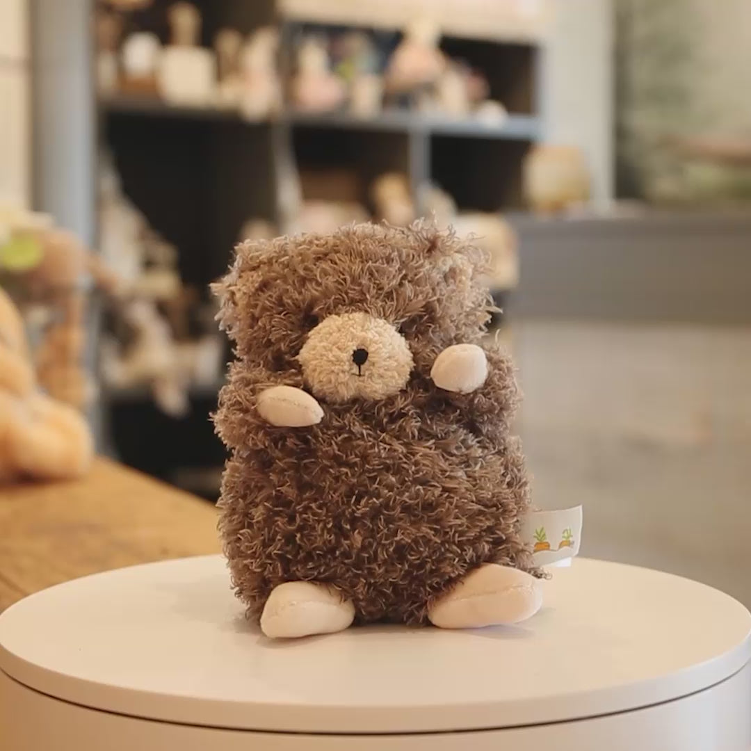 Wee Cubby is a bit chubbier around the middle when he is Wee! And that makes him even more huggable, and the perfect size for little hands to snuggle and hold. Super soft chocolate fur body with matching velour accents and sweet embroidered face make this teddy bear the sweetest of all the forest friends.