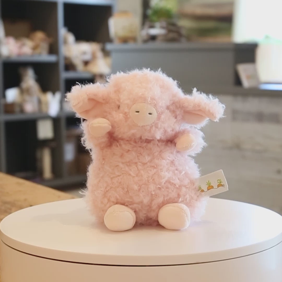 Wee Hammie may be small in size but is BIG in love. Scraggly fur in a lovely shade of pink with soft velour ears and hoofs. Hand embroidered eyes & kissably cute snout makes this the stuffed pig blue ribbon worthy from even the most discerning of judges!